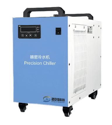 本機是通過壓縮機進行制冷, 再與水進行熱交換, 使水的溫度降低, 通過循環泵送出。同時使用溫度控制器進行溫度控制,具備恒溫、冷卻、循環的三種功能。也當作冷槽使用。